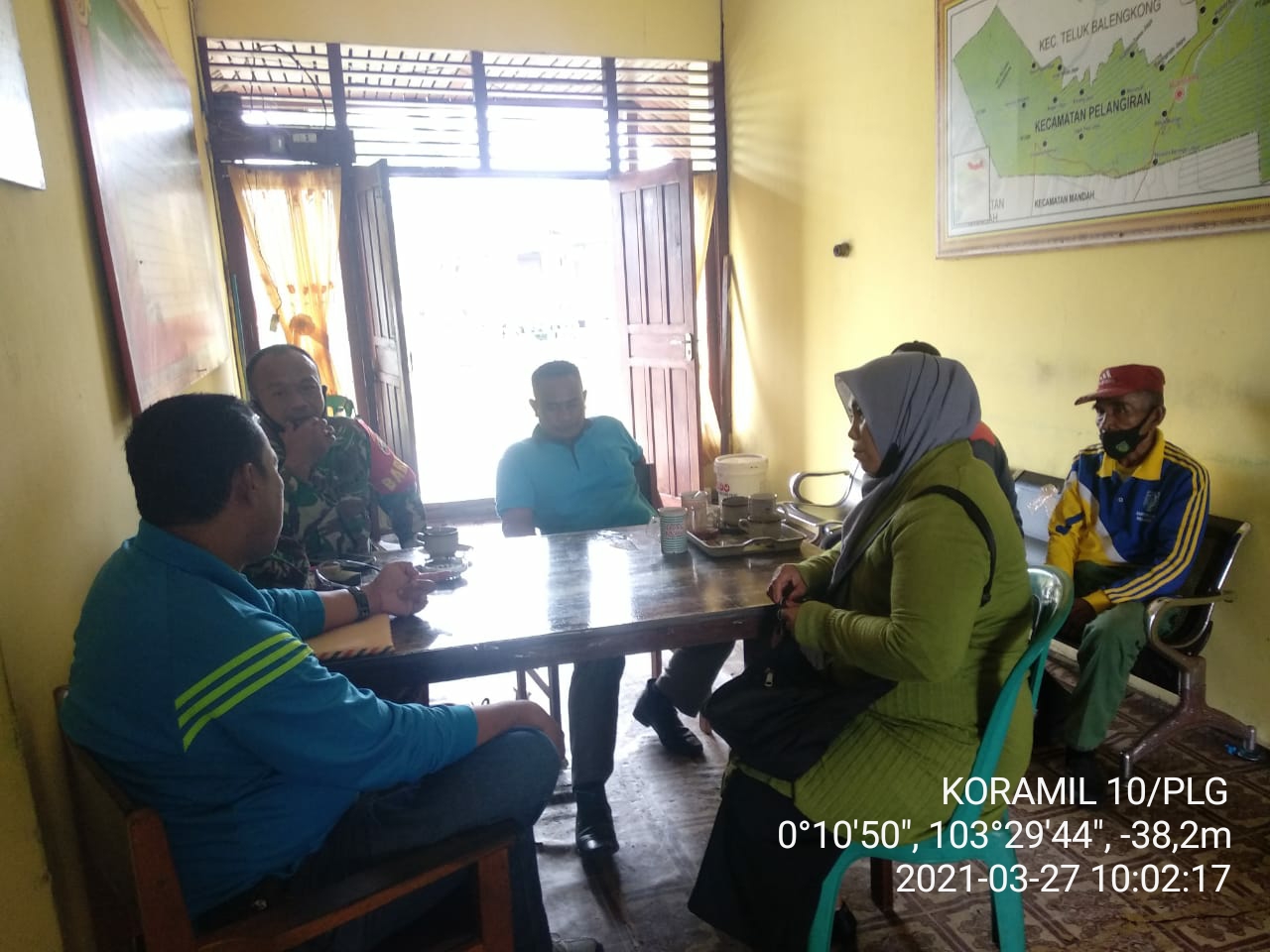 SERIBUPARITNEWS.COM,l PELANGIRAN - Babinsa Koramil 10/Pelangiran Kodim 0314/Inhil Melaksanakan Koordinasi sosial dengan staf Kecamatan Pelangiran Sabtu (27/03/2021)