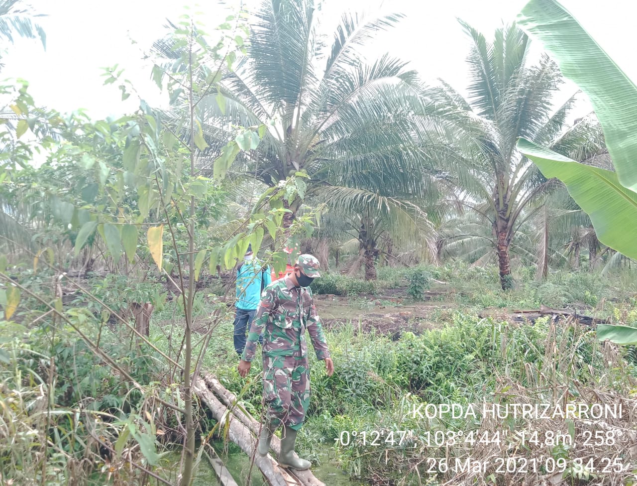 Menjelang tengah hari Babinsa Koramil 05/Gas Kodim 0314/Inhil Kopda Roni  melaksanakan Patroli Karhutlah terfokus di Areal PT.BDL Desa Sungai Rawa Kecamatan Gaung Anak Serka Jumat (26/03/2021)