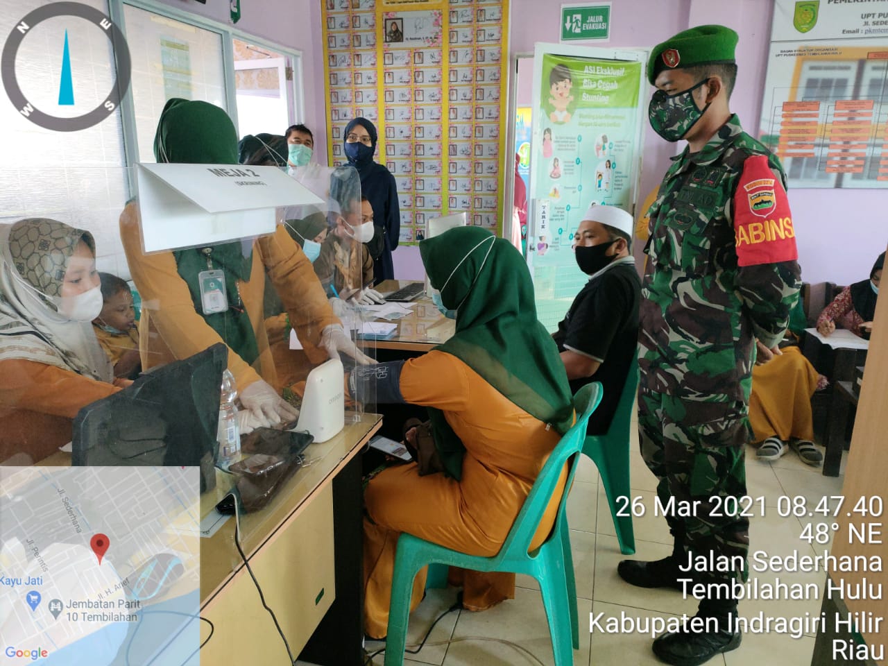 Sertu Zulfahri Babinsa Koramil 01/Tembilahan Kodim 0314/Inhil Melaksanakan Pengamanan Vaksinasi Covid19 tahap ll di Puskesmas Tembilahan Hulu