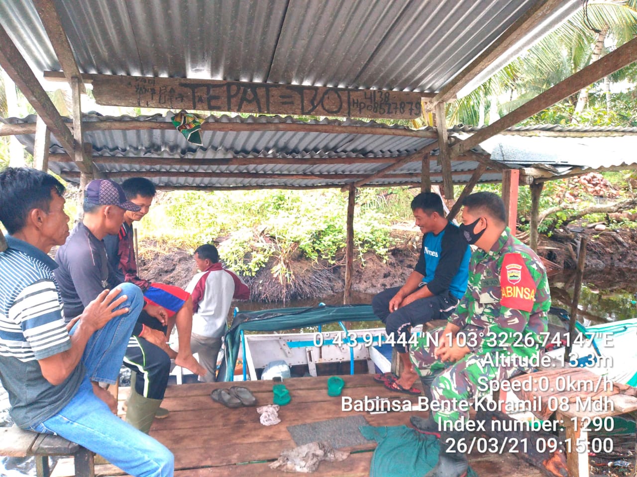 SERIBUPARITNEWS.COM, MANDAH -; Koramil 08/Mandah Kodim 0314/Inhil Melalui Babinsa Praka Hendrik Melaksanakan komunikasi Sosial  bersama warga Dusun Berayun di Desa Bente Kecamatan Mandah Jumat (26/03/2021)