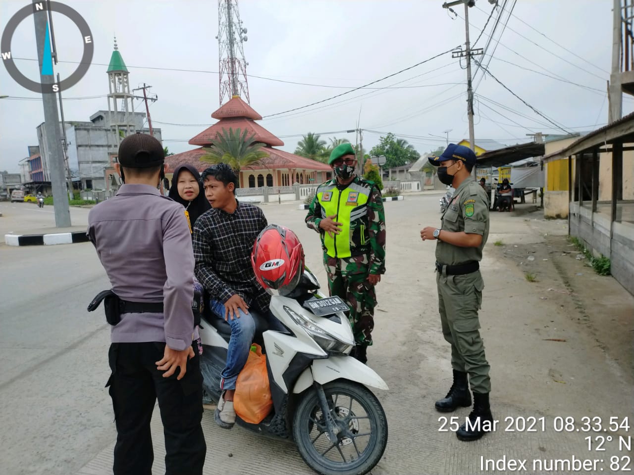 SERIBUPARITNEWS.COM,TEMBILAHANHULU - Kodim 0314/Inhil melalui Babinsa Koramil 01 Tembilahan Serda Khairunnas bersama beberapa personil kodim 0314/Inhil melaksanakan Operasi Yustisi dalam rangka penegakkan disiplin protokol kesehatan di Jalan Simpang Tiga Parit Enam Kecamatan Tembilahan Hulu Jumat (25/03/2021)
