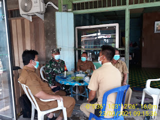 Babinsa mengkomunikasikan kepada perangkat desa mengenai menjaga keamanan dan ketertiban serta menerapkan protokol kesehatan
