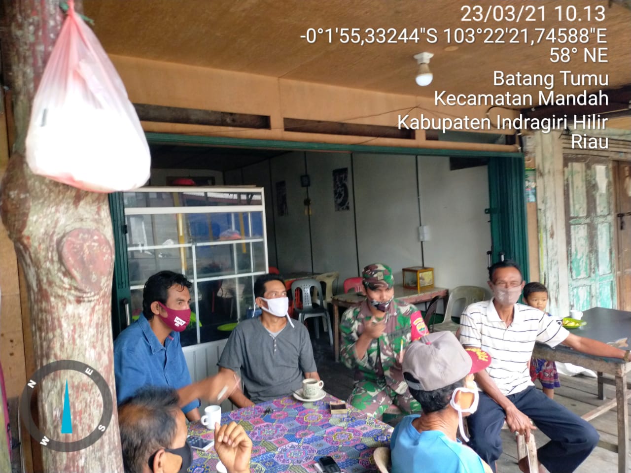 Serda Tulus Lumban Gaol Babinsa Koramil 08/Mandah Kodim 0314/Inhil Langkah Cepat Musyawarahkan Rencana Gotong Royong untuk memperbaiki sarana dan prasaraan yang dapat dikerjakan secara gotong royong di Desa Batang Tumu Selasa (23/03/2021)