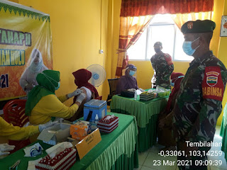 SERIBUPARITNEWS.COM,TEMBILAHANHULU - Serda Deni Sutrisno Babinsa Koramil 01/Tembilahan Mendampingi Vaksinasi Covid -19 di SDN 009 Tembilahan Hulu Selasa (23/03/2021)