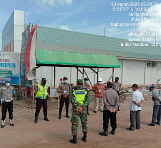 SERIBUPARITNEWS.COM, PULAUBURUNG - Babinsa Koramil 11/Pulau Burung Kodim 0314/Inhil Serda Arif Darmawan  bersama Gugus Tugas Covid Kecamatan Pulau Burung melaksanakan Kegiatan Penegakkan disiplin  Protokol Kesehatan Covid-19 Selasa (23/03/2021)