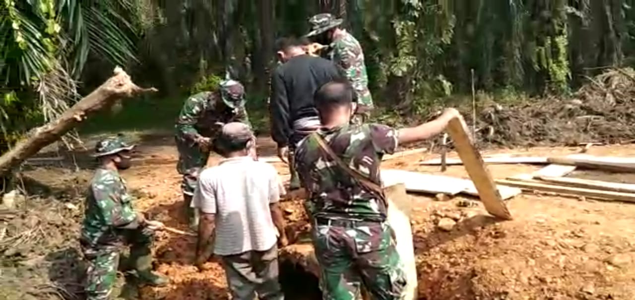 Dengan cara di cor biar tahan lama. Dalam pelaksanaan Danramil 14/Kepenuhan Kapten Inf Hendra P Barus ikut mengarahkan dalam pembuatan box jembatan, (22/03/2021).