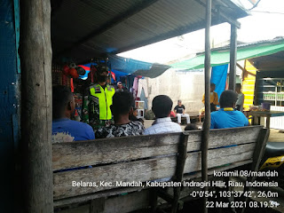 Babinsa tetap mengoptimalkan tugasnya dalam pengawasan dan penerapan protokol kesehatan yang sesuai dengan Perbup Inhil Tahun 2020