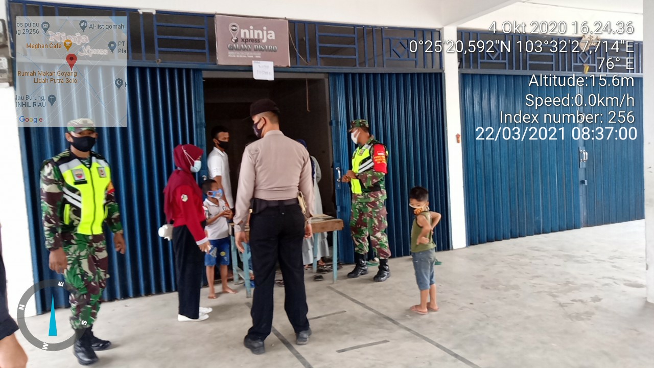 SERIBUPARITNEWS.COM, PULAUBURUNG - Babinsa Koramil 11/Pulau Burung Kodim 0314/Inhil dipimpin oleh Serda Arif D dan Babinkamtibmas Melaksanakan Kegiatan Penegakkan disiplin protokol kesehatan dijalan parit 2 Desa Pulau Burung Kecamatan Pulau Burung Kab Inhil Senin (22/03/2021)