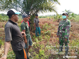 SERIBUPARITNEWS.COM, PULAUBURUNG - Babinsa Koramil 11/Pulau Burung Kodim 0314/Inhil  Serda Ratno melaksanakan melaksanakan kegiatan sosialisasi dan patroli karhutla didesa Pulau Burung Kecamatan Pulau Burung Kab Inhil Minggu (21/03/2021)
