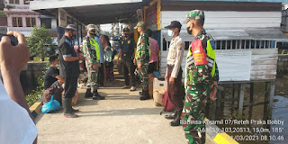 Himbauan Protokol Kesehatan berupa menghimbau warga, menggunakan masker, menjaga jarak dan mencuci tangan dengan sabun Menjaga jarak dan menghibdari Kerumunan, kegiatan ini dilakukan rutin dalam rangka Penegakan Disiplin Mematuhi Protokol Kesehatan (PDMPK) diwilayah, dengan sasaran Pasar, Pelabuhan dan tempat tempat warga kumpul kumpul, agar warga terus melakukan Protokol Kesehatan untuk mencegah penyebaran virus Covid-19,