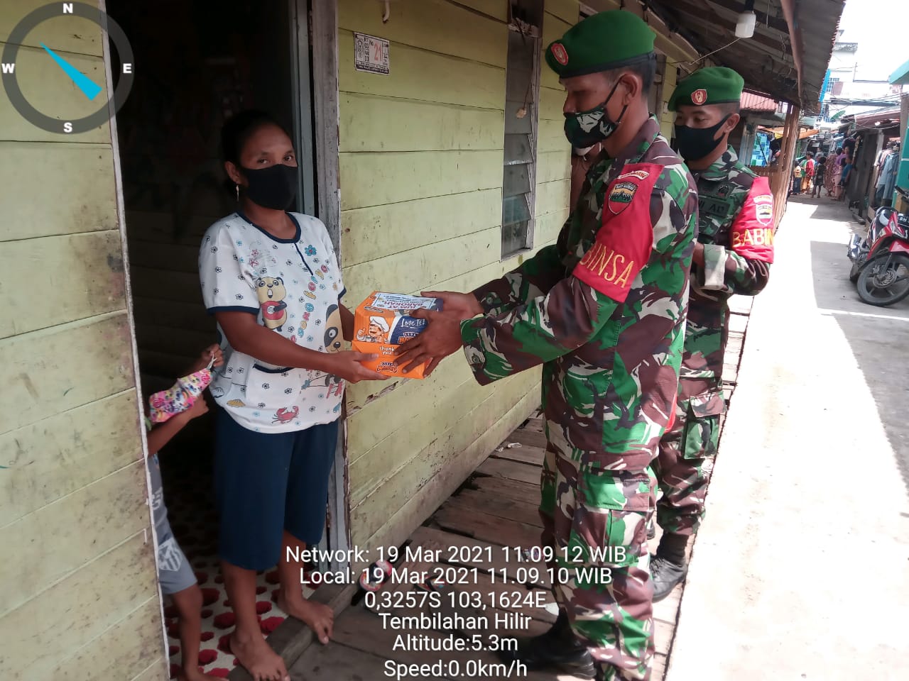 SERIBUPARITNEWS.COM,TEMBILAHAN - Serda Deni Sutrisno Babinsa Koramil 01/Tembilahan didampingi Personil Kodim melaksanakan pembagian Nasi Kotak ( Jumat Barokah ) di Jalan Pangeran Hidayat Gang bintan  dan Gang   kalimantan Kelurahan Tembilahan Hilir Kecamatan  Tembilahan Kab Inhil Jumat (19/03/2021)