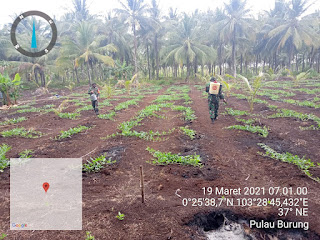 SERIBUPARITNEWS.COM, PULAUBURUNG - Guna merubah main set warga dalam mengolah lahan dengan cara membakar, Personil Koramil 11/Pulau Burung memberikan contoh karya Bhakti demplot Tanaman Semangka di dusun perpat desa Teluk Nibung Kecamatan Pulau Burung Jumat (19/03/2021)