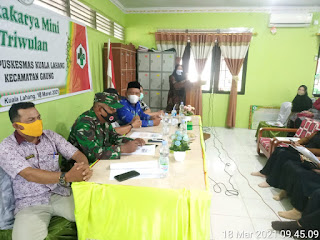 Serka Tota Simbolon Babinsa kuala lahang Koramil 05/Gaung Anak Serka Melaksanakan Komsos Rapat lokakarya mini di puskesmas kuala lahang