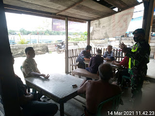 SERIBUPARITNEWS.COM,GAUNG - Serka Tota Simbolon Babinsa Koramil 05/Gas Kodim 0314/Inhil Penegakan Disiplin Protokoler Kesehatan  di Desa lahang Hulu Kecamatan Gaung Kab. Inhil Minggu (14/03/2021)
