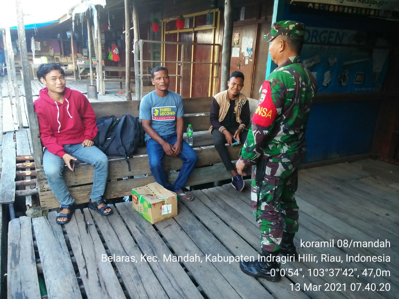 SERIBUPARITNEWS.COM,MANDAH - Di Pelabuhan Pasar Desa  Belaras, Serma M.Darmansyah berupaya agar Penumpang yang hendak berangkat tetap mematuhi protokol kesehatan yang berlaku Sabtu (13/03/2021)