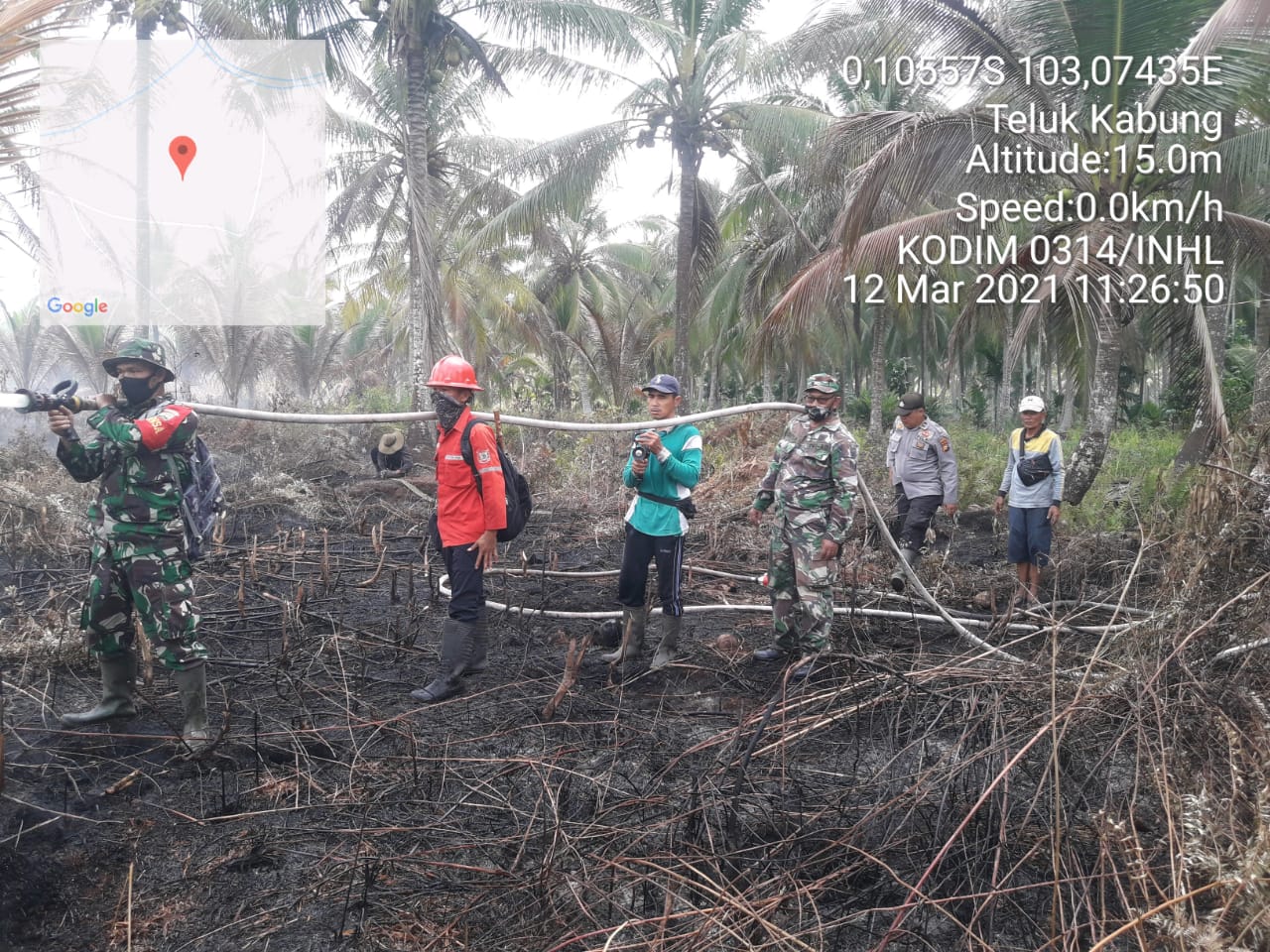 SERIBUPARITNEWS.COM, GAUNG - Serka Edy Hartono Babinsa Koramil 05/Gaung Anak Serka Kodim 0314/Inhil Bersama PT.MSK,MPA dan Polsek Gaung melaksanakan Pendinginan di Lahan Karhutlah beberapa waktu lalu di Desa Teluk Kabung Jumat (12/03/202