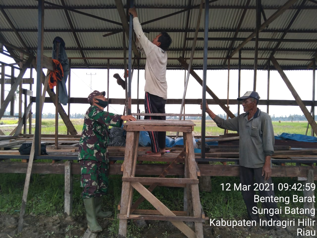 SERIBUPARITNEWS.COM,Benteng Barat,"–Pandemi Covid-19, tak mengurangi semangat Babinsa untuk tetap melakukan kegiatan Gotong-royong membangun salah satu rumah warga bapak Badrun alamat RT 03/RW 02 desa Benteng Barat Kecamatan Sungai Batang.