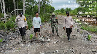 SERIBUPARITNEWS.COM, MANDAH - Serda Haris Mony Babinsa Koramil 08/Mandah Kodim 0314/Inhil berasama Babinkamtibmas Melaksanakan Patroli Karhutkah Gabungan di Desa Batang Sari Kecamatan Mandah Senin (08/03/2021)