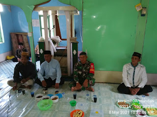 SERIBUPARITNEWS.COM, MANDAH - Babinsa  Koramil 08/Mandah Kodim 0314/Inhil Serma M. Darmansyah Melaksanakan Komsos  bersama dengan warga di Mesjid Nurul Huda dalam rangka acara Israj Miraj di Desa Belaras Kecamatan Mandah Kab. Inhil Senin (08/03/2021)