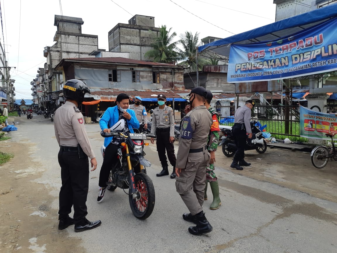 Terlihat di lokasi Team Gugus Tugas Kecamatan Reteh sedang melaksanakan teguran kepada warga yang sedang beraktipitas di jalan umum dan para pedagang maupun pembili untuk memberikan edukasi dan mensosialisasikan pentingnya mematuhi protokol kesehatan Covid-19.