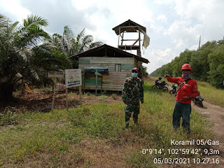 SERIBUPARITNEWS.COM, GAUNG ANAL SERKA - Serka Sugibiyono Babinsa Koramil 05/Gas Kodim 0314/Inhil melaksanakan patroli karhutla bersama security di seputaran area PT. BDL Kecamatan Gaung Jumat (05/03/2021)