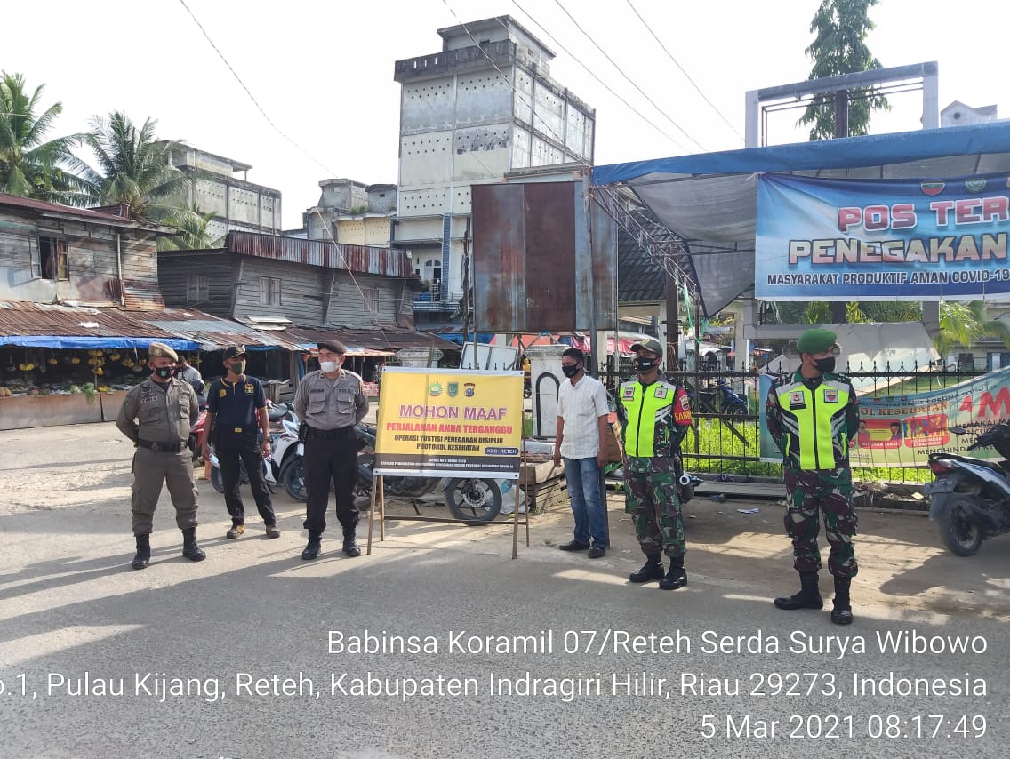 Team Gugus Tugas Kecamatan Reteh sebanyak 11 Orang yang terdiri dari Anggota Koramil 07/Reteh, Anggota Polsek Reteh, Sat Pol PP dan Relawan yang dilaksanakan di Pasar tradisional.Jum'at 05/03/2021