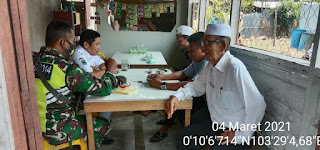 SERIBUPARITNEWS.COM, PELANGIRAN - Didalam pelaksanaan tugas teritorialnya,Sertu Supriadi Melaksanakan Koordinasi dengan Pihak Puskesmas Pelangiran di Kelurahan Pelangiran Kamis (04/03/2021)
