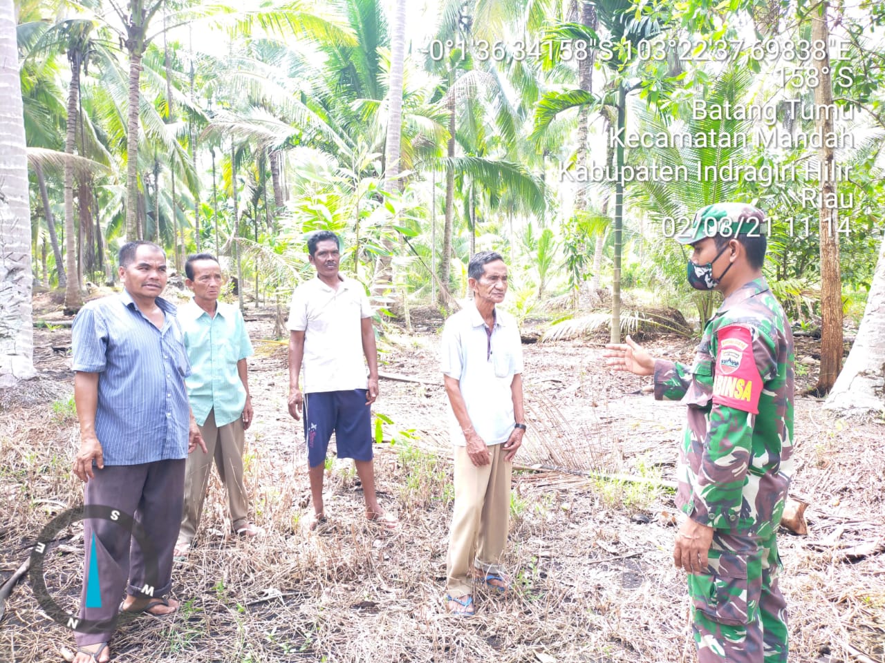 Babinsa  selalu mengingatkan dan menghimbau warga jangan membakar lahan kebun kelapanya sembarangan apalagi cuaca musim panas sekarang