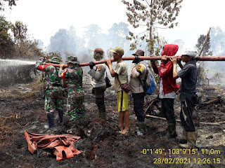 SERIBUPARITNEWS.COM, GAUNG - Di Hari Kedua Karlahut di Desa Belantaraya, Babinsa  Koramil 05/Gaung Anak Serka Dipimpin  Serka Sugibiyono Bersama Anggota Polsek Melaksanakan Pemadaman Karhutla Minggu (28/02/2021)