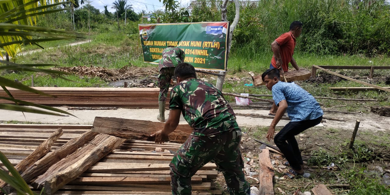SERIBUPARITNEWS.COM, TEMBILAHAN - Babinsa Pekanarba Koramil 01/Tembilahan Kodim 0314/Inhil Melaksanakan Program  Bedah Rumah Tidak Layak Huni ( RTLH ) Kerja sama Kodim dan Bank BRI, milik Bapak Amirullah Sam, 68 Tahun dengan profesi  Petani dengan Alamat Jalan Bersama 2, Kelurahan Pekan Arba Kecamatan Tembilahan Minggu (28/02/2021)