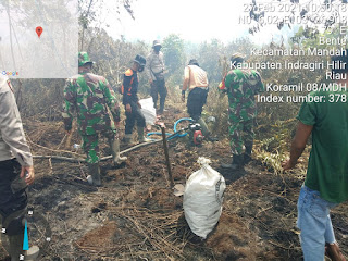 Danramil 08/Mandah Kodim 0314/Inhil Kapten Arh.Uwin Suharto memimpin langsung pemadaman di titik api tersebut dengan menerjunkan Anggota Polsek dan Tim BPBD Inhil di lokasi seluas kurang lebih dua hektar tersebut