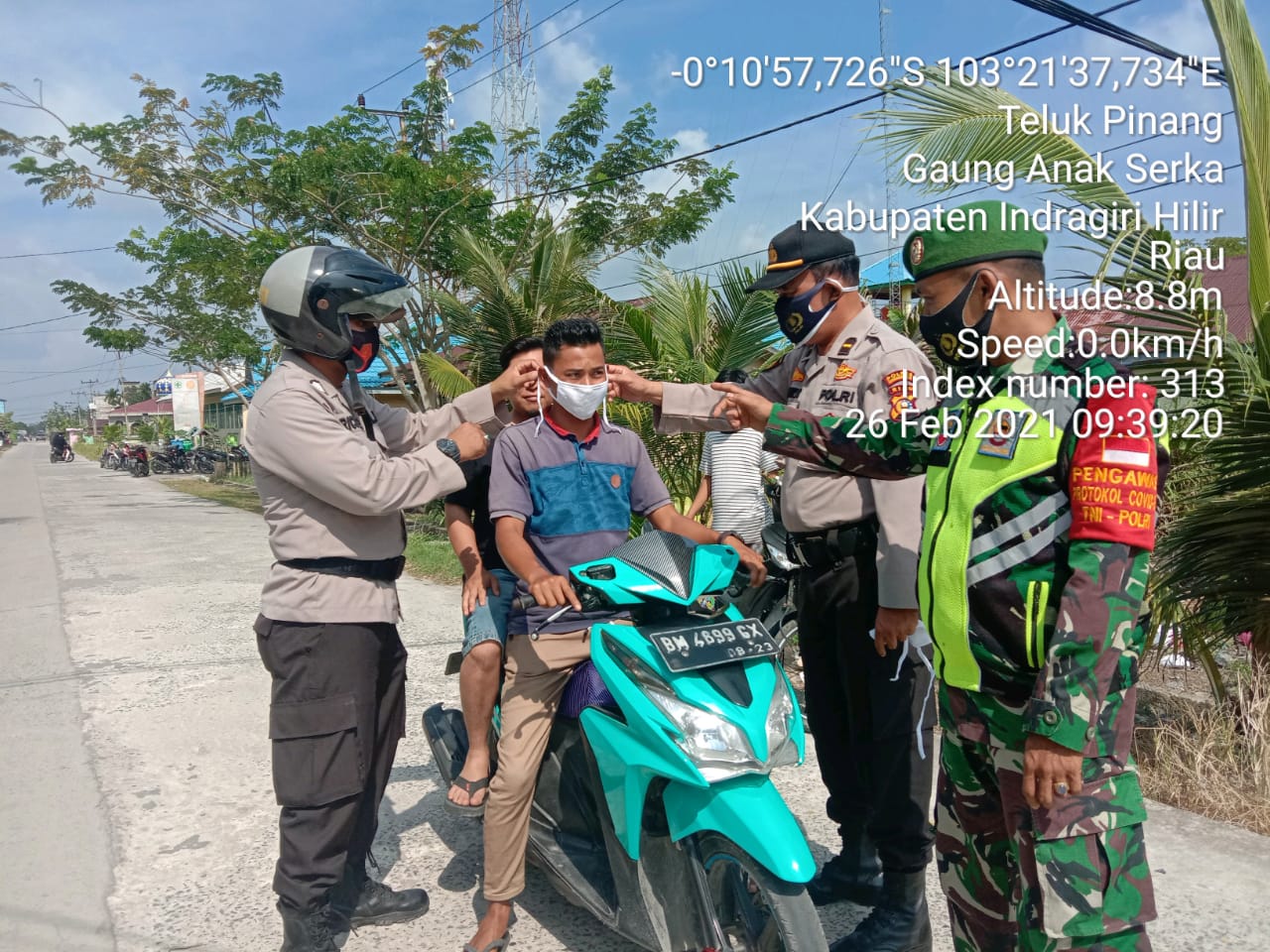 SERIBUPARITNEWS.COM,GAUNG ANAK SERKA - Babinsa Koramil 05/Gas Kodim 0314/Inhil Kopda Umar Bersama Anggota Polsek melaksanakan penegakan disiplin Protokol kesehatan kepada warga