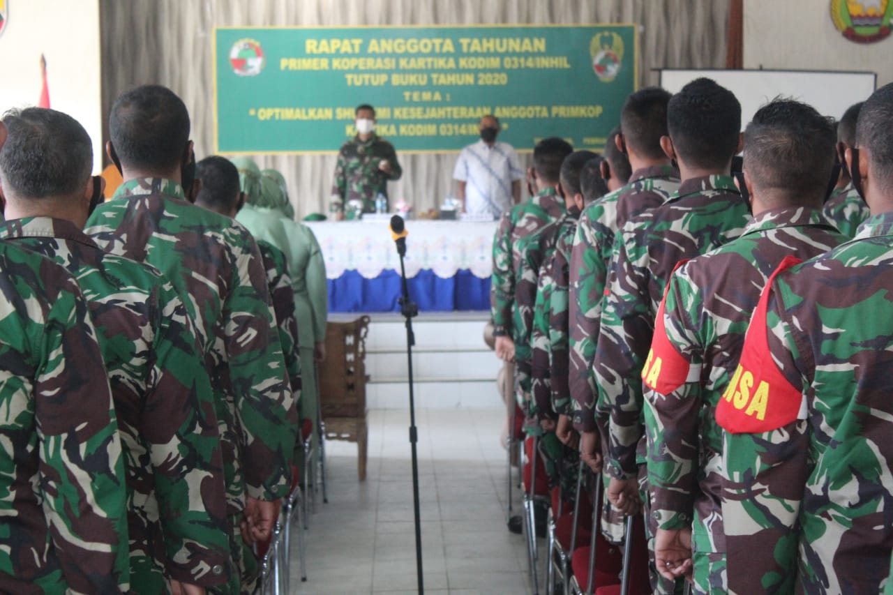 SERIBUPARITNEWS.COM,TEMBILAHAN  - Kodim 0314/Inhil Menggelar Rapat Anggota Tahunan (RAT) Primer Koperasi Kartika tutup buku tahun 2020 dengan tema Optimalkan SHU Demi Kesejahteraan Anggota Primkop Kartika Kodim 0314/lnhil, Kamis (25/02/2021).