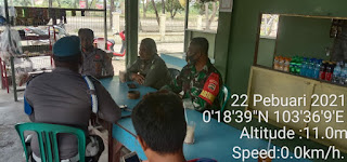 Dipimpin Sertu Supriadi Babinsa Koramil 10/Pelangiran Kodim 0314/Inhil Tim yang terdiri dari Satpol PP dan anggota Polsek  melakukan koordinasi mempersiapkan personil dan peralatan guna pencegahan Karlahut