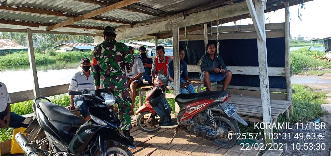 SERIBUPARITNEWS.COM, PULAUBURUNG - Babinsa Koramil 11/Pulau Burung Kodim 0314/Inhil Serda Arif D Melaksanakan Komsos kepada warga yang masih melanggar aturan Disiplin Protokol Kesehatan Covid-19. di Desa Pulau burung Kecamatan Pulau Burung Kab.Inhil Senin. (21/02/2021)