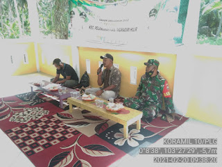 SERIBUPARITNEWS.COM, MANDAH - Babinsa Koramil 10/Pelangiran Kodim 0314/Inhil Serma Sri Wahyono Melaksanakan Kegiatan Komsos bersama Kades dan perangkat desa Teluk Bunian Sabtu (20/01/2021)