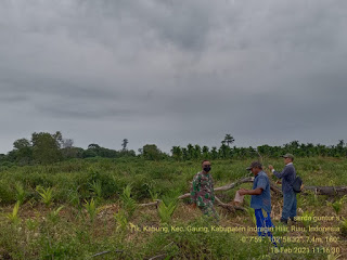 Dengan dibantu Pihak PT.MSK Serda Guntur menyisir jalur patroli ke Areal konsesi PT.MSK ,over skip, Kecamatan Gaung
