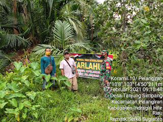 SERIBUPARITNEWS.COM, PELANGIRAN - Serka Sugianto Babinsa Tanjung Simpang Koramil 10/Pelangiran Kodim 0314/Inhil melaksanakan Patroli dan Sosialisasi Karhutlah di Desa Tanjung Simpang Kecamatan Pelangiran Kabupaten Indragiri Hilir Rabu (17/02/2021)