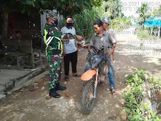 SERIBUPARITNEWS.COM, GAUNG - Babinsa Koramil 05/Gas Kodim 0314/Inhil Serda Jonlis Melaksanakan Penegakan Disiplin Protokol Kesehatan di Desa Lahang Hulu Kecamatan Gaung Selasa (16/02/2021)
