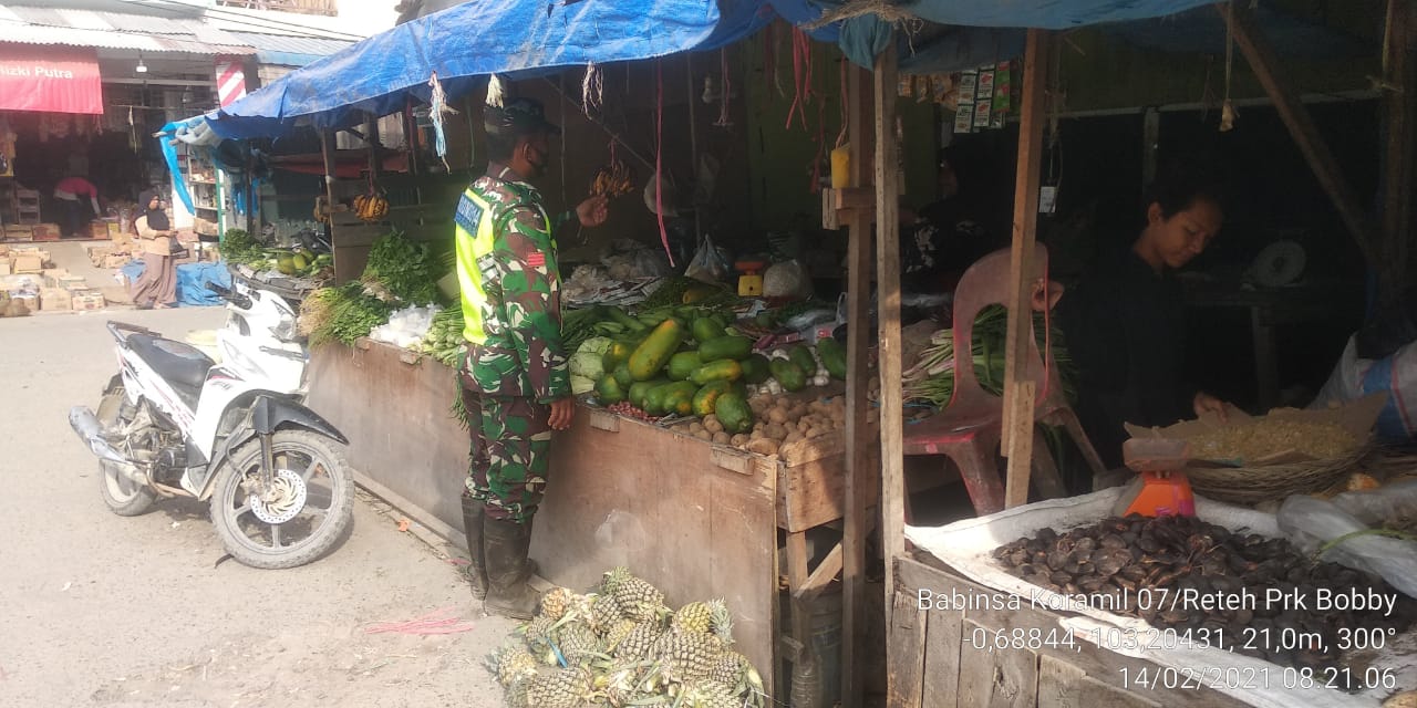 Untuk mendisiplinkan warga masyarakat, Babinsa Jajaran Koramil 07/Reteh tidak bosan-bosannya melaksanakan kegiatan Penegakan Disiplin Mematuhi Protokol Kesehatan Seperti hari ini Babinsa jajaran Koramil 07/Reteh Bersama team gugus tugas Kecamatan Reteh melaksanakan pendisiplinan di pasar tradisional. Minggu (14/02/2021).