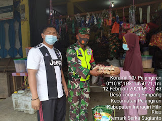 SERIBUPARITNEWS.COM, PELANGIRAN - Serka Sugianto Babinsa Koramil 10/Pelangiran Kodim 0314/Inhil Melaksanakan Kegiatan Pendampingan Penyaluran Bansos BPNT di desa Tanjung simpang kecamatan Pelangiran Sabtu (13/02/2021)