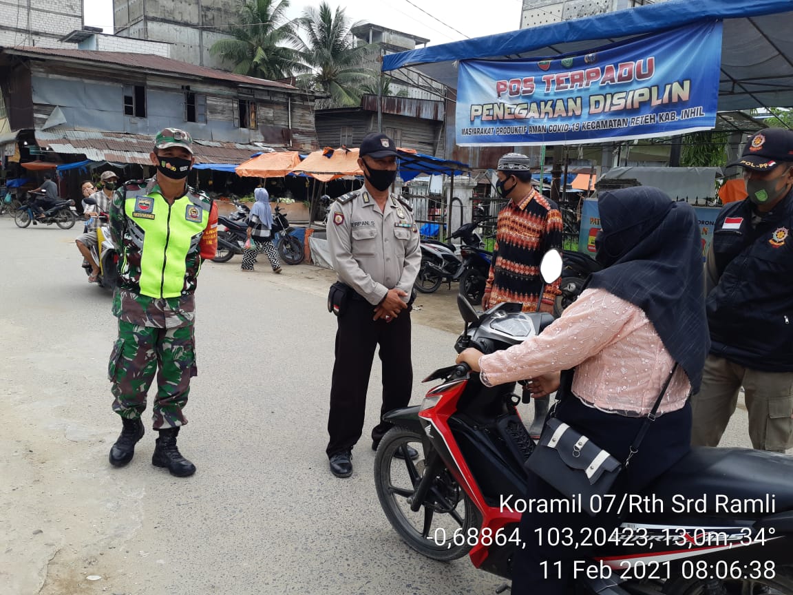 Dalam kesempatannya Babinsa Koramil 07/Reteh Beserta Team satgas Covid 19 Kecamatan Reteh Yang terdiri dari Anggota Koramil 07/Reteh Anggota polsek Reteh Sat Pol PP dan Relawan laksanakan menghimbau dan mengingatkan warga binaannya untuk patuhi aturan pemerintah tentang penegakan disiplin Protokol Kesehatan dengan cara 4M, Memakai Masker, Menjaga Jarak,Men Cuci tangan sebelum dan sesudah beraktifitas, Menghindari Kerumunan dan selalu meningkatkan Pola hidup sehat. Terang Babinsa