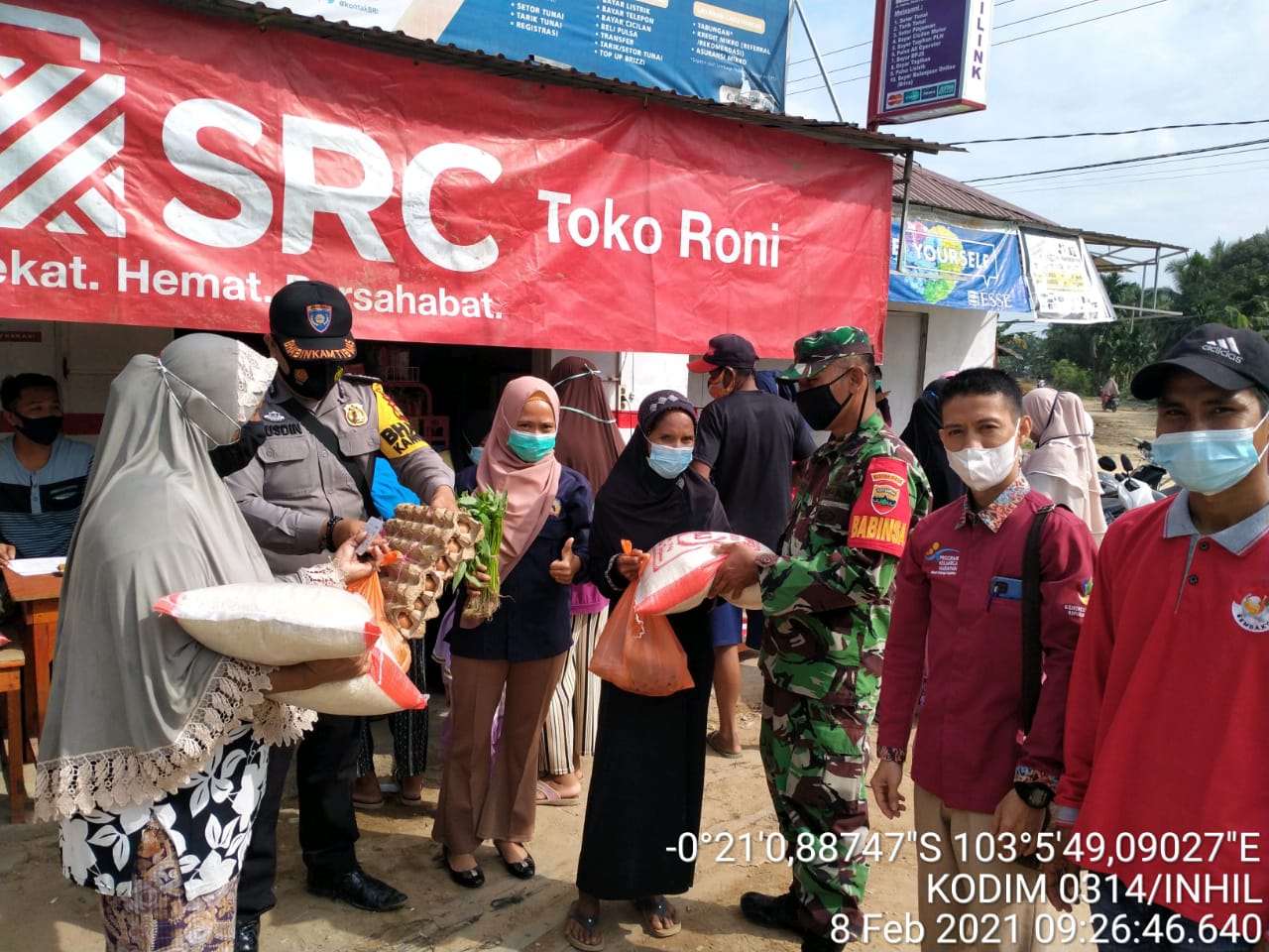 SERIBUPARITNEWS.COM, TEMBILAHANHULU - Sertu Masri Babinsa Koramil 01/Tembilahan Kodim 0314/Inhil Melaksanakan Pendampingan Penyaluran Bantuan Non Tunai di Desa Pekankamis Kecamatan Tembilahan Hulu Senin (08/02/2021)