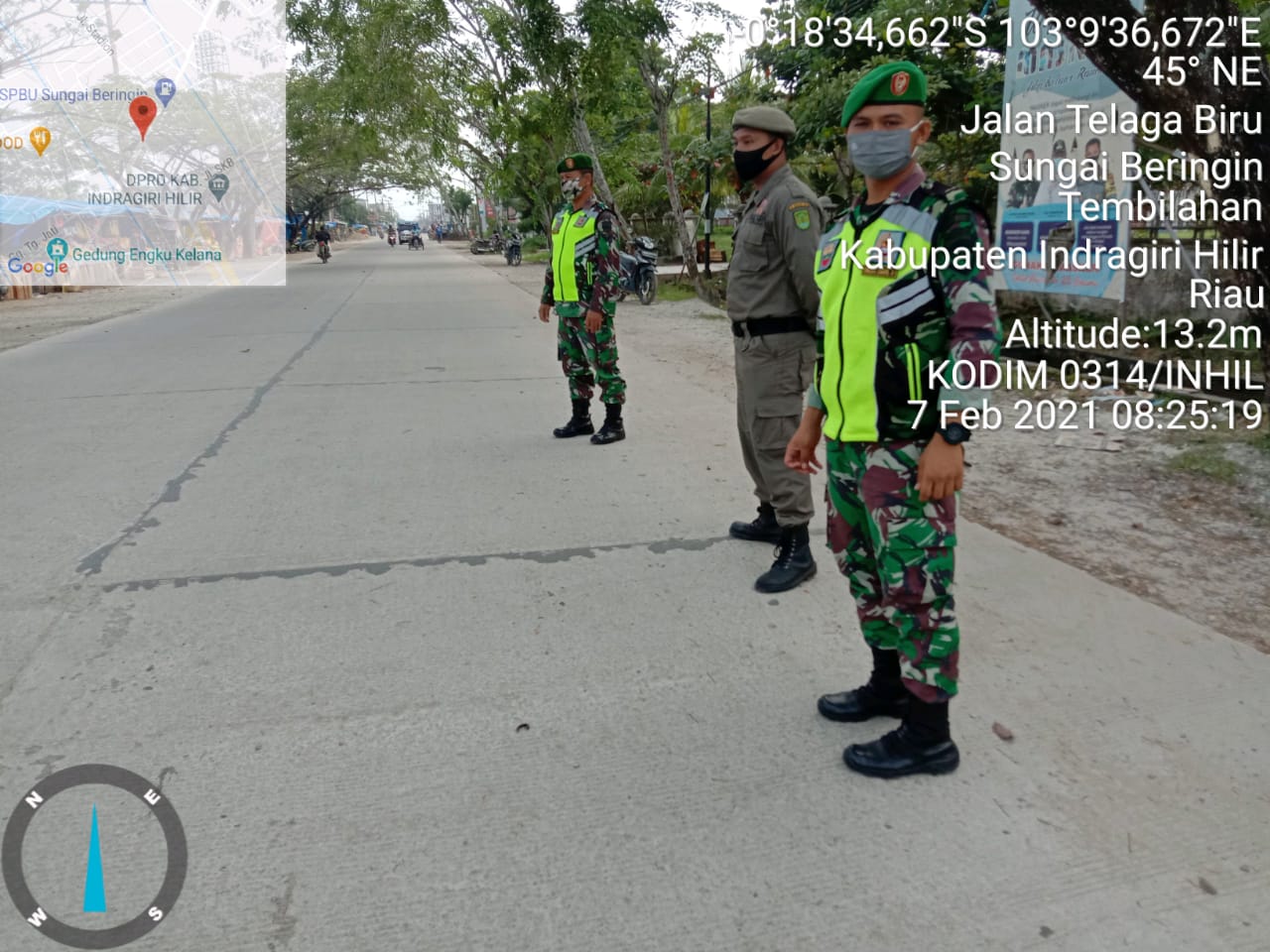 Penegakkan disiplin dilaksanakannya bersama Personil Kodim 0314/Inhil bersama Satpol PP di simpang empat Sei Beringin