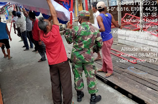 SERIBUPARITNEWS.COM,MANDAH - Babinsa Koramil 08/Mandah Kodim 0314/Inhil Serda Haris Mony Melaksanakan Komsos Karya Bhakti dengan Warga di pasar Bekawan Desa Bekawan Kecamatan Mandah Kab. Inhil Sabtu (06/02/2021)