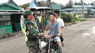 SERIBUPARITNEWS.COM, PULAUBURUNG - Serda Zain Pulungan Babinsa Koramil 11/Pulau Burung Kodim 0314/Inhil melaksanakan  komsos dengan warga desa pulau Burung tentang himbauan pemakaian masker Kamis (04/02/2021)