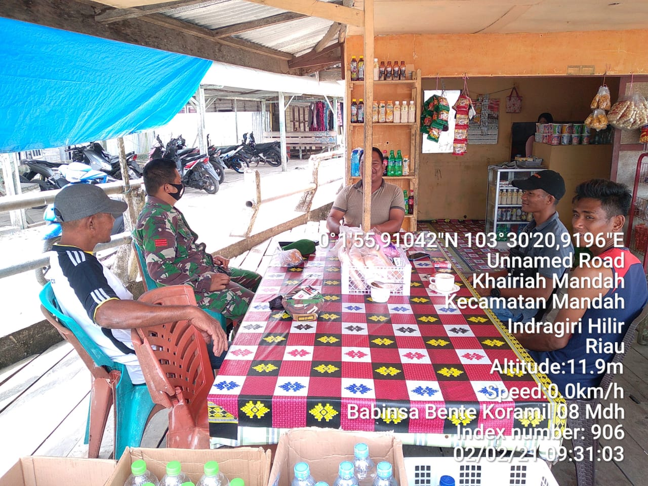 SERIBUPARITNEWS.COM, MANDAH - Babinsa Koramil 08/Mandah Kodim 0314/Inhil Praka Hendri Melaksanakan Komsos dengan warga tentang Penyakit Masyarakat (Pekat)di Pasar Mandah Keluarahan Khairiah Mandah Kecamatan Mandah Kabuapaten Indragiri Hilir Selasa (02/02/2021)