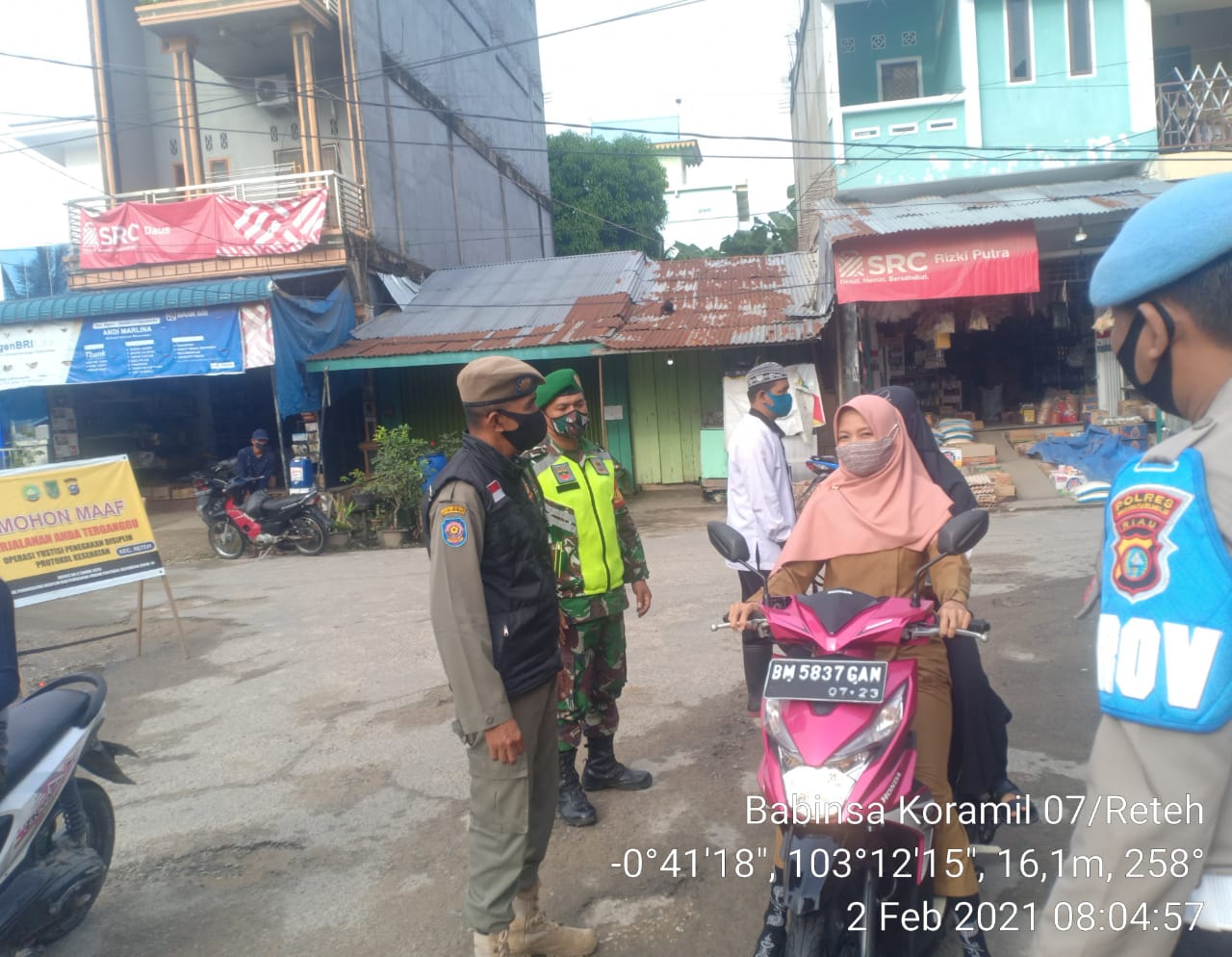 SERIBUPARITNEWS.COM,Reteh," - Babinsa Koramil 07/Reteh Anggota Polsek Reteh Sat Pol PP dan Relawan tidak henti-hentinya melaksanakan Patroli operasi Prokes kepada masyarakat. Bertempat di jalan Umum Kel P Kijang. Kec. Reteh Kab. Inhil.Selasa 02/02/2021