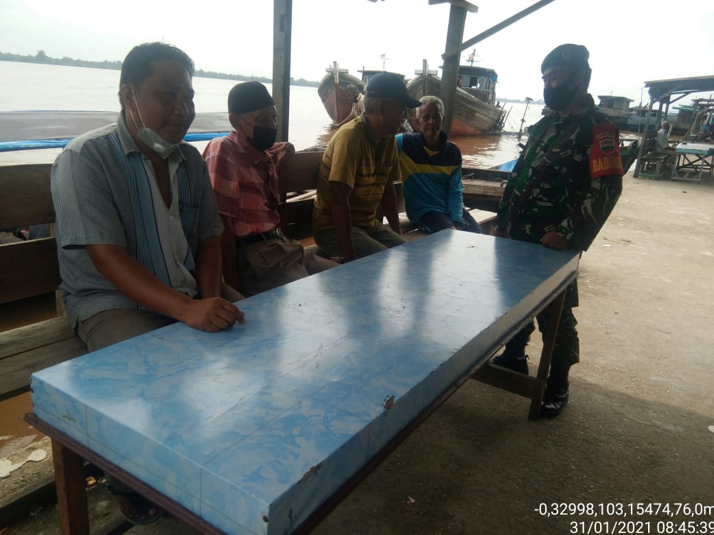 SERIBUPARITNEWS.COM, TEMBILAHAN - Babinsa Koramil 01/Tembilahan   Sertu Syafriadi Koto melaksanakan Komsos bersama RT 02 RW 01 Saudara Anuar di Pelabuhan Seberang Tembilahan Kecamatan Tembilahan Minggu (30/01/2021)