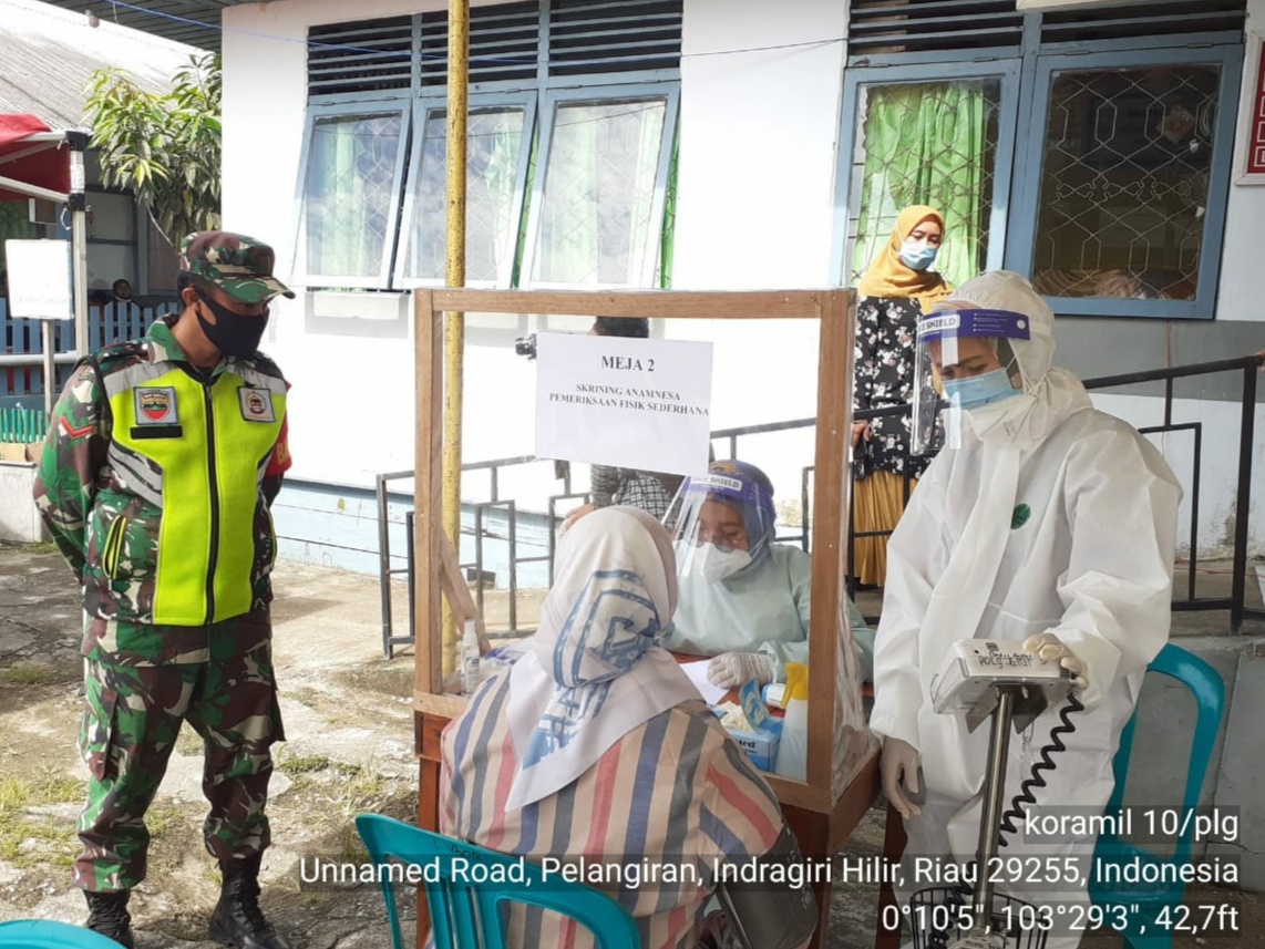 Kopda Dodimen Babinsa Koramil 10/Pelangiran Kodim 0314/Inhil Bersama Anggota Polsek Melaksanakan Pengawasan Penyuntikan Vaksin Sinovac